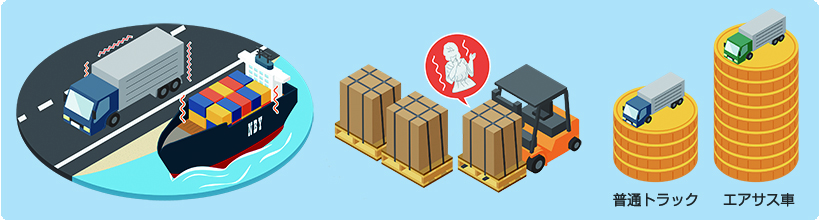 しかし、エアサス車で輸送していた精密機器・部品、医薬・食品などは、輸送中の振動によって破損や劣化につながる可能性があります。