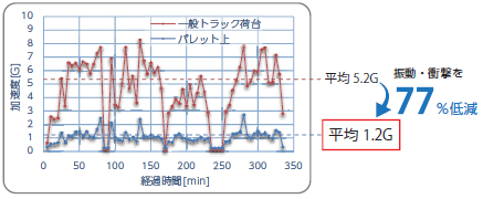 防振パレットの利用で振動を77% 低減