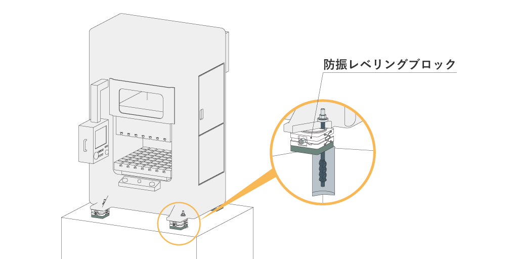 使用している防振プレートは、永久ひずみの変化が少ないので、レベル調整後の精度保持に適しており長寿命です。