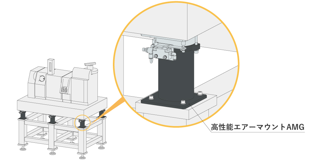 ばねタイプより振動減衰性に優れた、高性能エアーマウントがあります