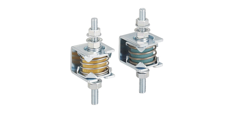 ばねと防振材を併用したハイブリッド構造で、軽量の対象物でも高い効果が得られます。また、防振材の減衰効果でゆれが早く収まります。