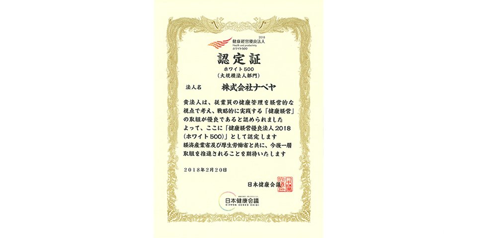 「健康経営優良法人ホワイト500(大規模法人部門)」に認定。協会けんぽ主催「健康経営推進事業所」に選定