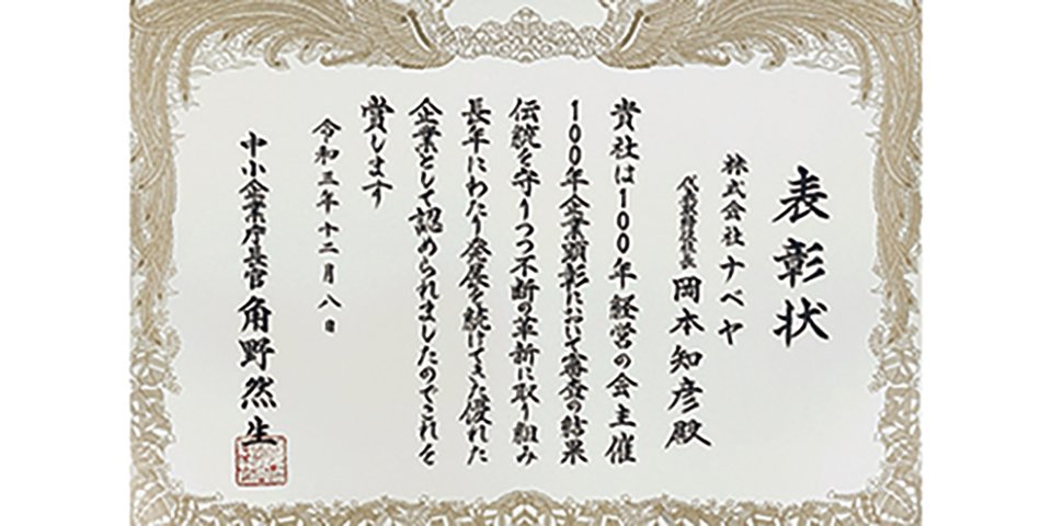 100年企業顕彰にて中小企業長官賞を受賞。
