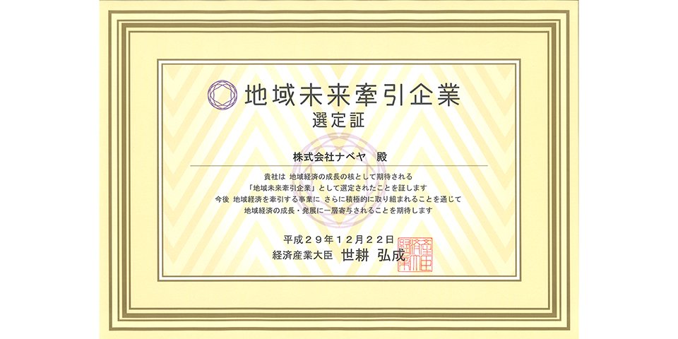経済産業省主催「地域未来牽引企業」に選定
