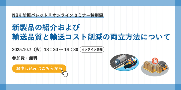 【セミナー】第5回 NBK防振パレット®新製品の紹介および 輸送品質と輸送コスト削減の両立方法についてを開催します