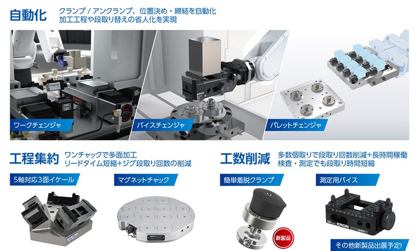 マシニング加工用ジグを中心に自動化や5軸加工におけるジグの運用方法や方向性などの課題解決にお役立てできる製品を多数出展します!