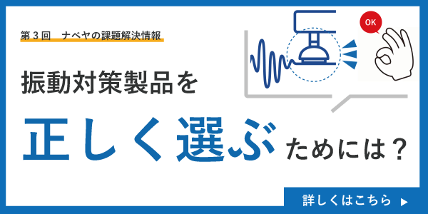 振動対策は、誤った対策製品を導入すると効果がない、逆に状態が悪化するなど悪影響を及ぼすことがあります。正しい振動対策製品をお選び頂くために、ナベヤ公式サイトでは除振・防振「選定ナビ」をご用意しています。今回は、「選定ナビ」を活用した除振・防振製品の選び方を、参考となるお役立ち情報の掲載記事と合わせて解説いたします。ぜひ、ご一読ください!