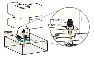 振動は地震や揺動防止対策によるアンカーボルトや連結時のボルト経由で伝い装置へ影響を及ぼします。