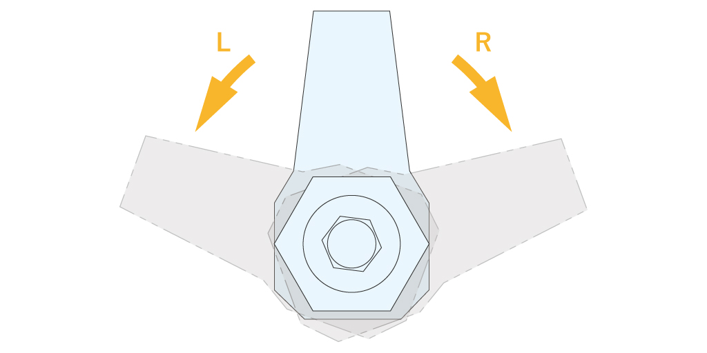 - 旋回方向は、右(R)/左(L)いずれにも対応。設置レイアウトや着脱時のワーク動線に合わせて選択できます。