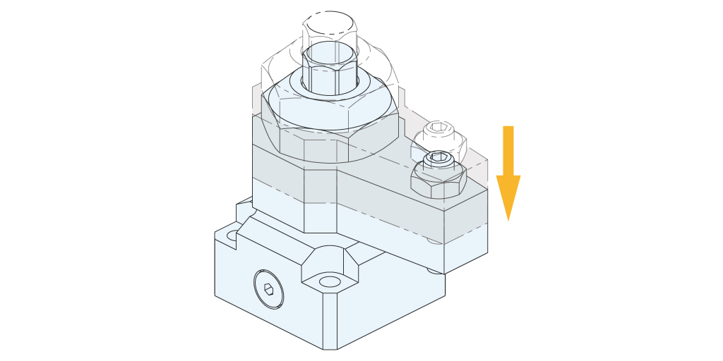 - 干渉を防ぎ、工具パスの変更もないため、上面加工用のクランプに最適です。