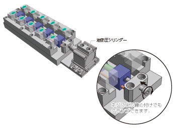 • 手締めパーツ(例:ソケットスクリュー)または油空圧シリンダーを取り付けてください。