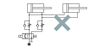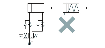 ①複動シリンダと単動シリンダを併用するシステムでは、基本的には同一回路での制御はしないでください。