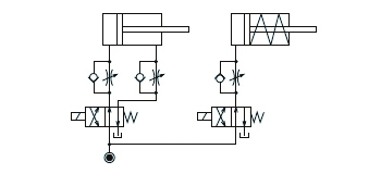 単動シリンダと複動シリンダを併用する場合は、次の回路を参考にしてください。