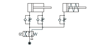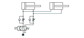 複動シリンダの速度を制御する場合、ロック側・リリース側共にメータアウト回路としてください。
