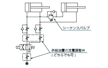 また、動作速度に制約のあるシリンダ(スイングクランプ、油圧コンパクトシリンダ等)の制御は、なるべくシリンダ毎に調整弁を設置してください。