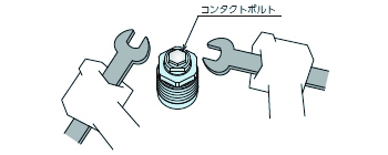 ①コンタクトボルトの取付け、取外しの際は、必ずピストンロッド先端の二面巾にスパナを掛け、ロッドの廻り止めを行なってください。