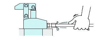 ③配管を左右に揺すり、配管継手の喰い込み部を緩めてください。エアの混入した作動油が出てきます。