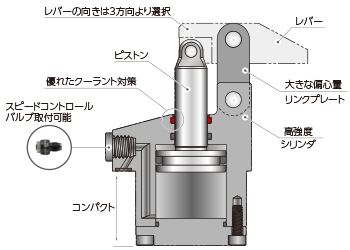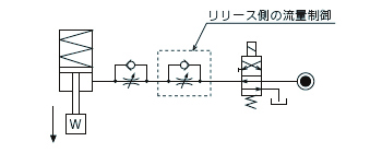 リリースに時に、リリース動作方向に負荷がかかりシリンダを破損させる恐れのある場合は、チェック弁付流量調整弁を使用し、リリース側の流量も制御してください。(スイングクランプで、リリース時にレバー重量がかかる場合も該当)