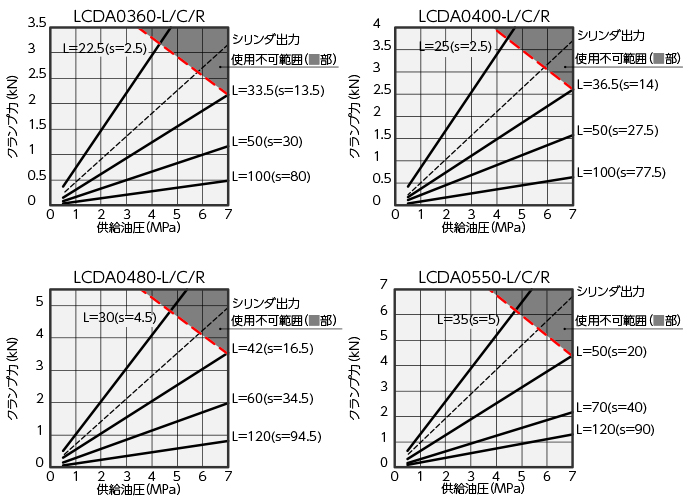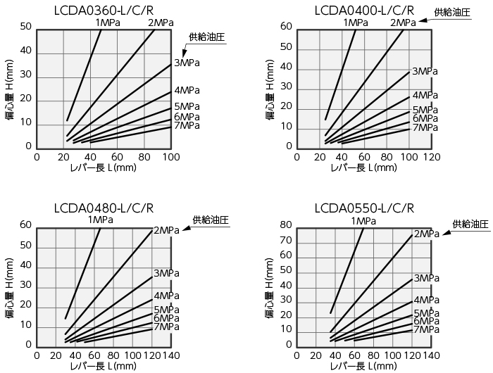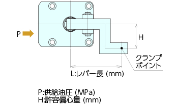 供給油圧 5.0MPa、レバー長 L=80mmの時、許容偏芯量は約10mmとなります。