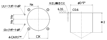 選択 オーダーNo. No. A B C D E F G H J K L M Nx Ny Q R S T U V W x Y Z 面取り1 面取り2 AA AB AC AD AE AG JA JB ロック/リリースポート Oリング