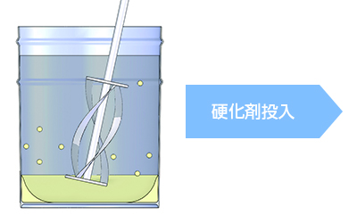 ■硬化剤の着色により混合完了を見える化。混合不良を防止し、確実な混合が可能です。