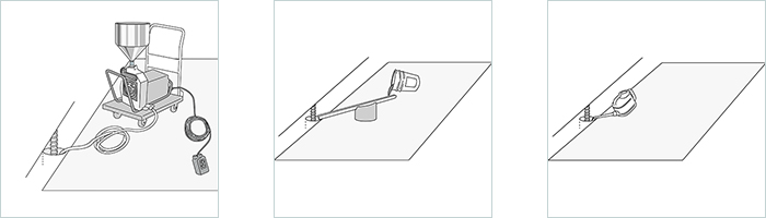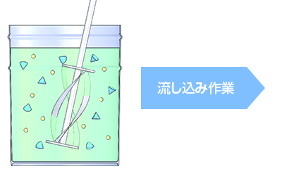 流し込み作業は、とい、じょうろ、ポンプ等による作業となります。詳細はご相談ください。