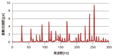 (下のグラフはベース上で測定した鉛直方向の振動加速度)