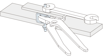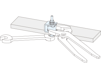 下部ホールド金具にサラナットを挿入し、ホールド金具ををプライヤ等で押えながら、サラナットを締めます。ホールド金具をコの字金具に対し、図のような向きになるよう設置してください。