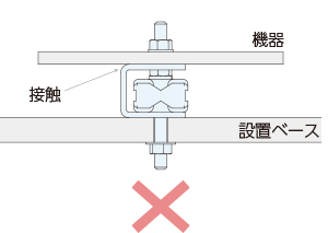 ・設置ベースは水平にして設置してください。傾きがあるとコの字金具に接触し、防振効果が得られません。