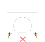 許容荷重を下回る場合、コの字金具に接触し、防振効果が得られません。
