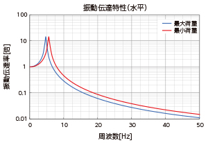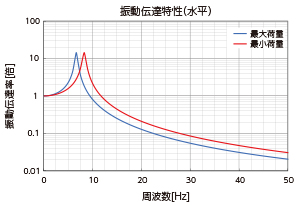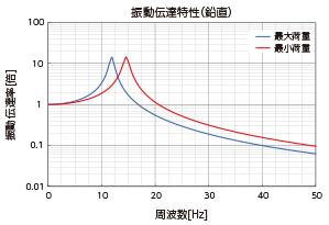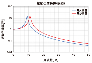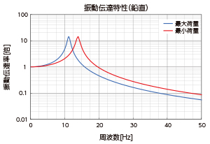 振動周波数がマウントの固有振動数の√2倍以下の場合には、振動が増幅します。