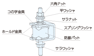 金具と防振材との接合に接着材を使用していないため、接着部の劣化や剥がれがなく、長くご使用いただけます。