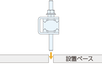 下部サラナットを外し、本体を設置ベースにセットします。(上部の六角ナットと平ワッシャは外しますが、サラナットは外さないでください。)