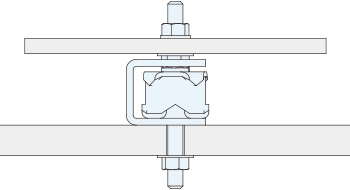 上部サラナットの上に機器を搭載します。機器を搭載すると上部ホールド金具下がり、コの字金具から離れます。機器の下面とコの字金具が接触する場合は、許容荷重オーバーですので、許容荷重の大きい防振マウントに変更してください。