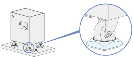 装置を持ち上げて、キャスターを防振キャスターホルダのキャスターストッパーの中央に置いてください。