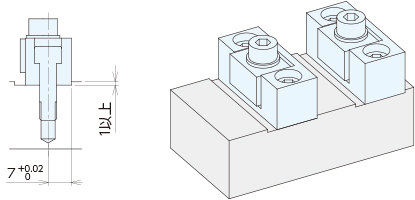 加工穴にマイクロダウンサイドクランプを取り付け用位置決めボルト(付属品、型式:MS50)を用いて取り付けます。