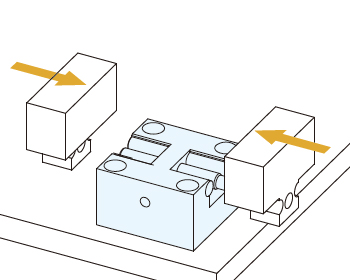 左右の調整ネジを締め切った状態にすると、中心ブロックが固定され、±0.5mmの移動がない固定用として使用できます。