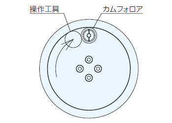 入力軸の操作終了後は、必ずカムフォロアを円の最上部(12時の位置)に停止させてください。