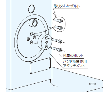 ハンドル操作用アタッチメントを付属しているボルトで取り付けます。