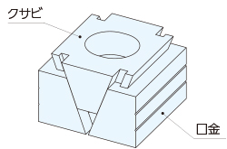 切粉がクランプに付着しないように、クサビの動きに追従して口金を移動させるスプリングは、本体内部に組み込まれています。