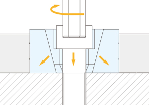 六角穴付ボルト(別売)を六角レンチで締めることにより、本体が下がり口金が両サイドに広がりワークをクランプします。