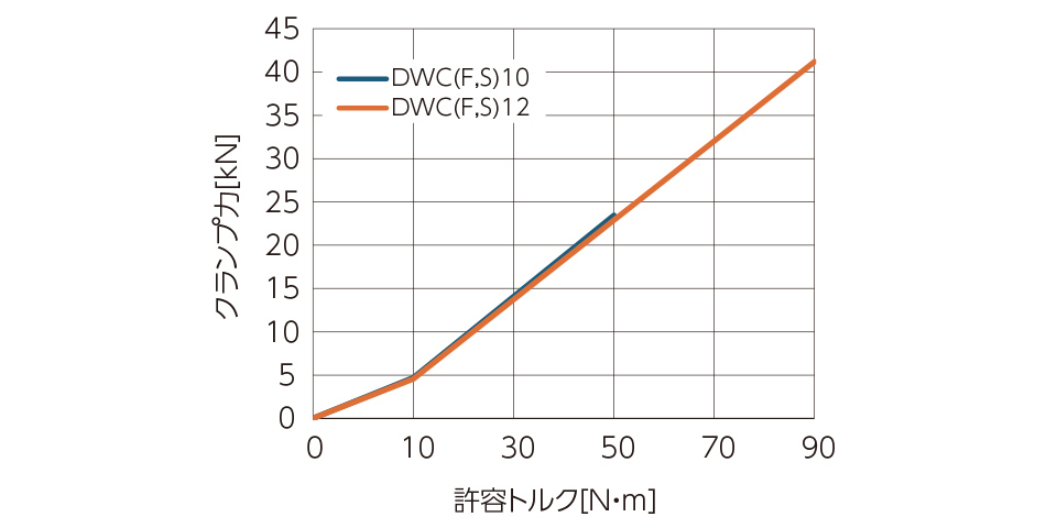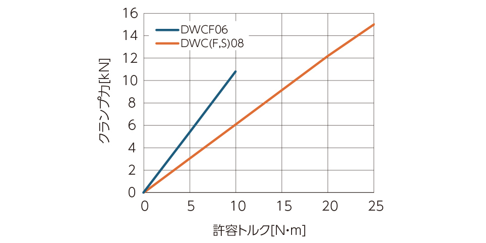 操作トルクと締付力の能力線図は次の通りです。