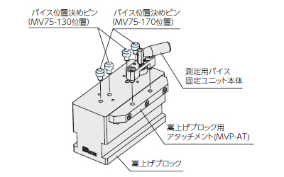 ※固定する測定用バイスがMV75-170、MV75-130で位置決め用ピンの取付け位置が異なるのでご注意ください。