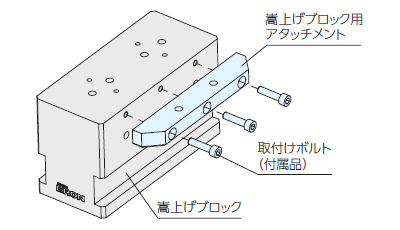 嵩上げブロック用アタッチメント(別売り)を測定用バイス嵩上げブロック(別売り)の側面に取付けます。