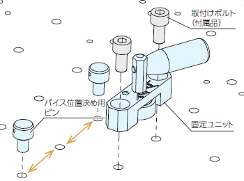 「測定用搬送パレット」「測定用バイス嵩上げブロック」への取付方法は以下をご確認ください。