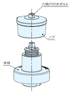 ノブは本体と上部の六角穴付きボルト(六角対辺2.5㎜)で固定されています。