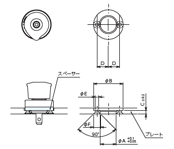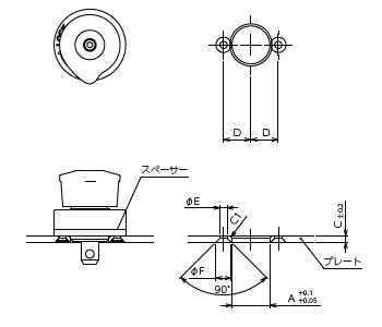 No. 適合スペーサーNo. 取付プレート厚み A B C D E F