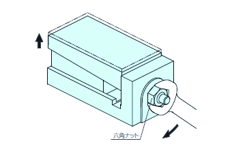 六角ナットを緩め、本体と隙間を作ります。スピンドルの端面をハンマー等で叩くと下降します。