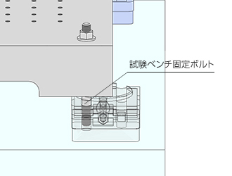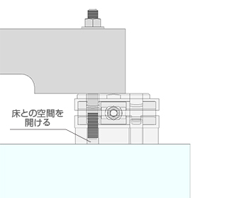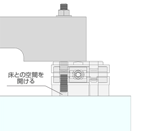 M16タップ使用時、試験ベンチ固定用ボルトが床に接触していなかご確認ください。ボルトが床に接触すると、振動がボルトを伝わって床から試験ベンチ(試験ベンチから床)に伝達してしまい効果が無くなります。