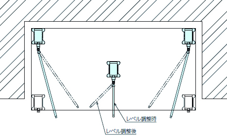 ■人の入り込めない定盤、機械の下に設置し、遠隔操作でレベル調整ができます。